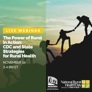 Since 2011, the National Organization of State Offices of Rural Health (NOSORH) has set aside the third Thursday of November to celebrate the "Power of Rural" on National Rural Health Day. National Rural Health Day is an opportunity to bring attention to and honor the incredible efforts of rural healthcare providers, communities, organizations, State Offices of Rural Health (SORH), and other stakeholders dedicated to addressing the unique healthcare needs of rural America.