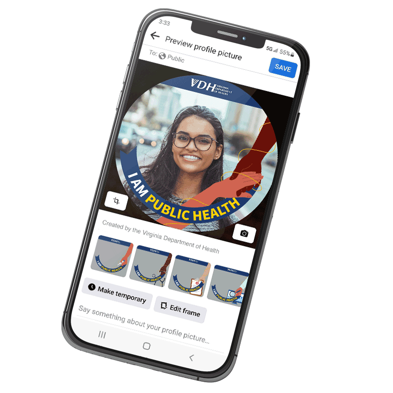 Inspire your social circle with a customized look for your Facebook profile and share your support of Virginia’s public health efforts!