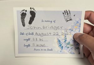 Bridger was born on August 22, 2023 – Rainbow Baby Day. A day meant to honor hope after loss. But for us, it became the day we both said hello and goodbye. He was born at 23 weeks. He had the longest fingers, the biggest feet, and looked just like Rae’s little brother. He was so deeply, fiercely loved.