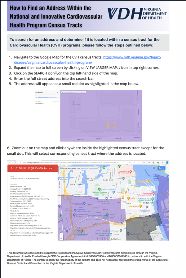 Through Coverdell, the Virginia Department of Health is implementing the Virginia Stroke Continuum Program. This program will focus on strengthening continuity of stroke care within census tracts where the stroke crude prevalence is 150% greater than the stroke crude prevalence of the corresponding county or city.